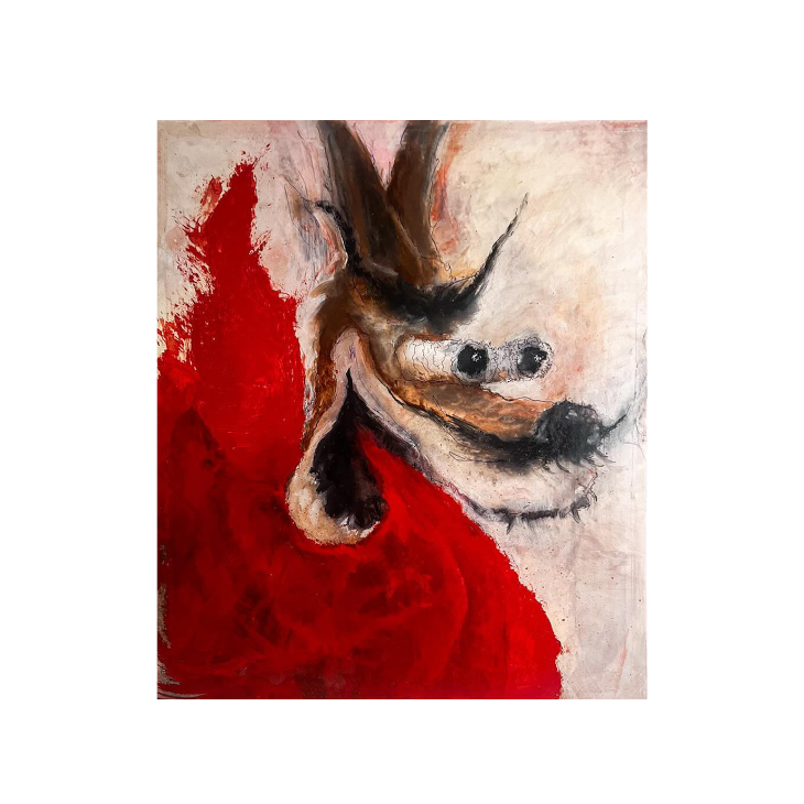 Utilizing a blend of contemporary techniques, such as digital printing and spray painting, alongside traditional oil methods like grisaille, glazing, and varnishing, the work hovers between modernity and a distant past.