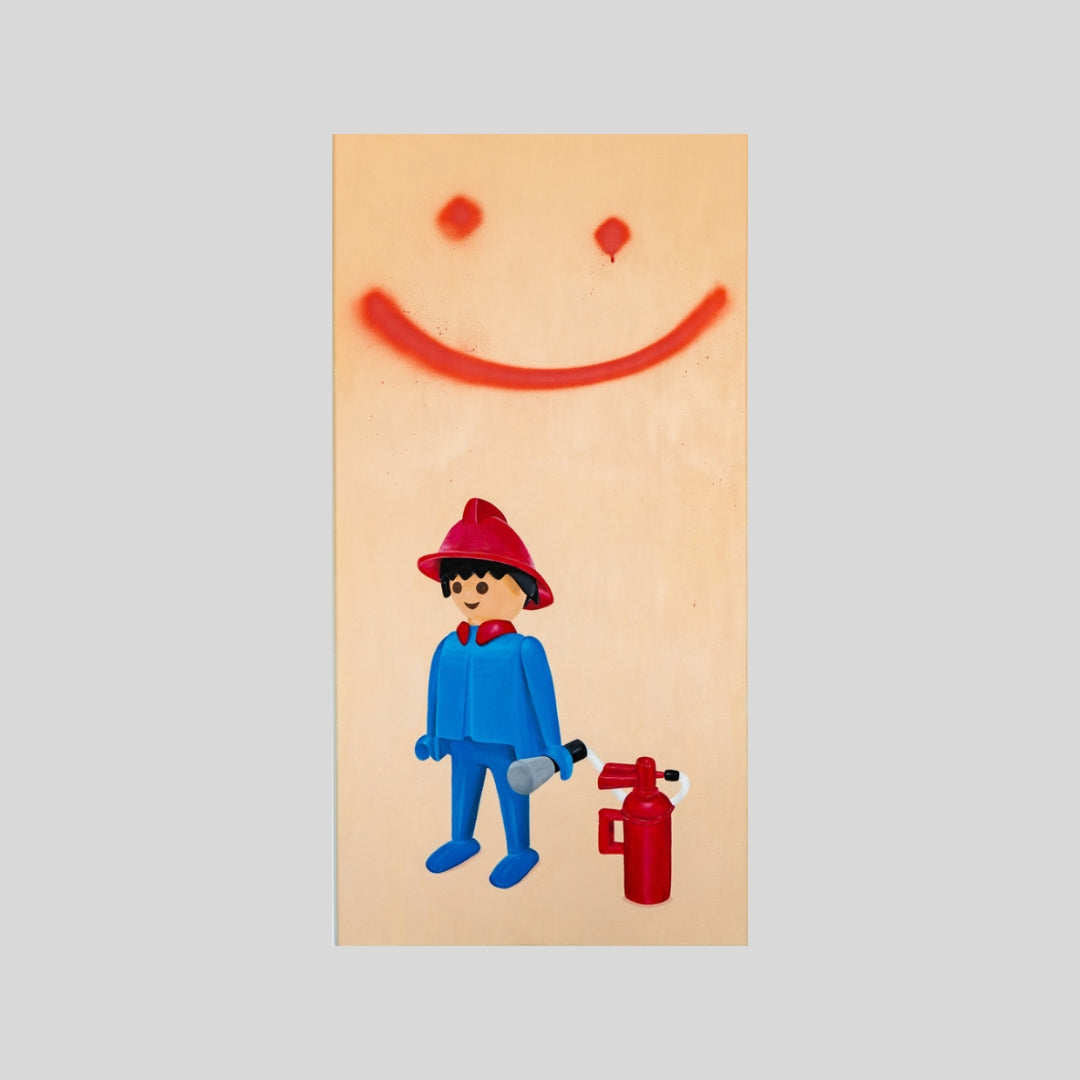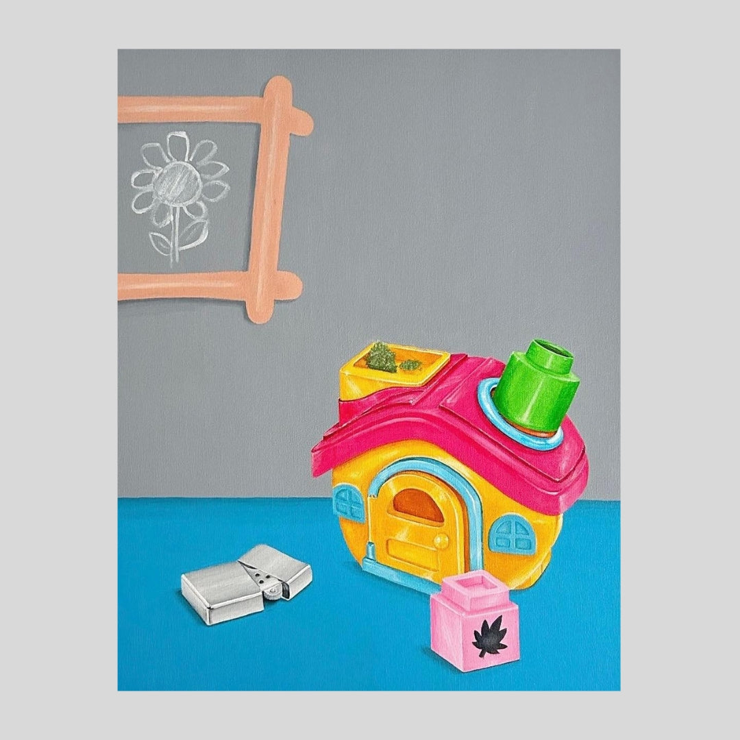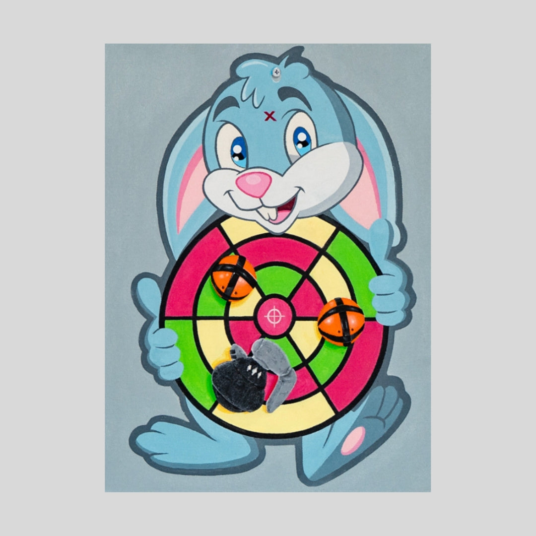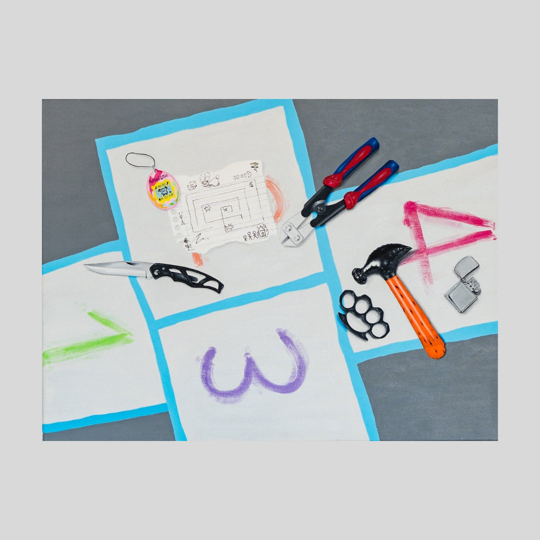 In the universe of these works, hyperreal weaponry appears against lurid playroom imagery, chasing the feverish joy of playing with a new toy - is this menace real, or harmless?”