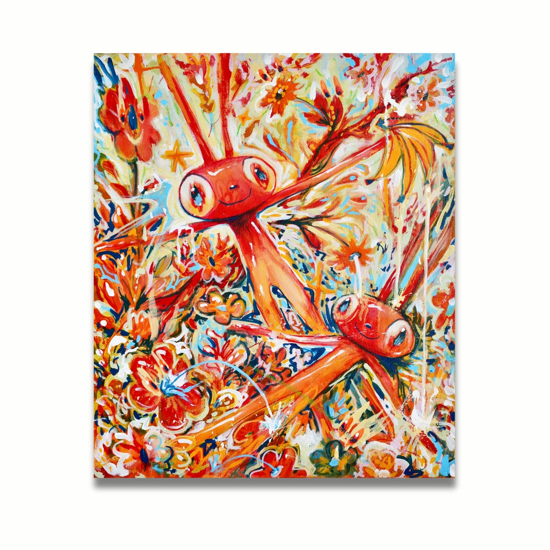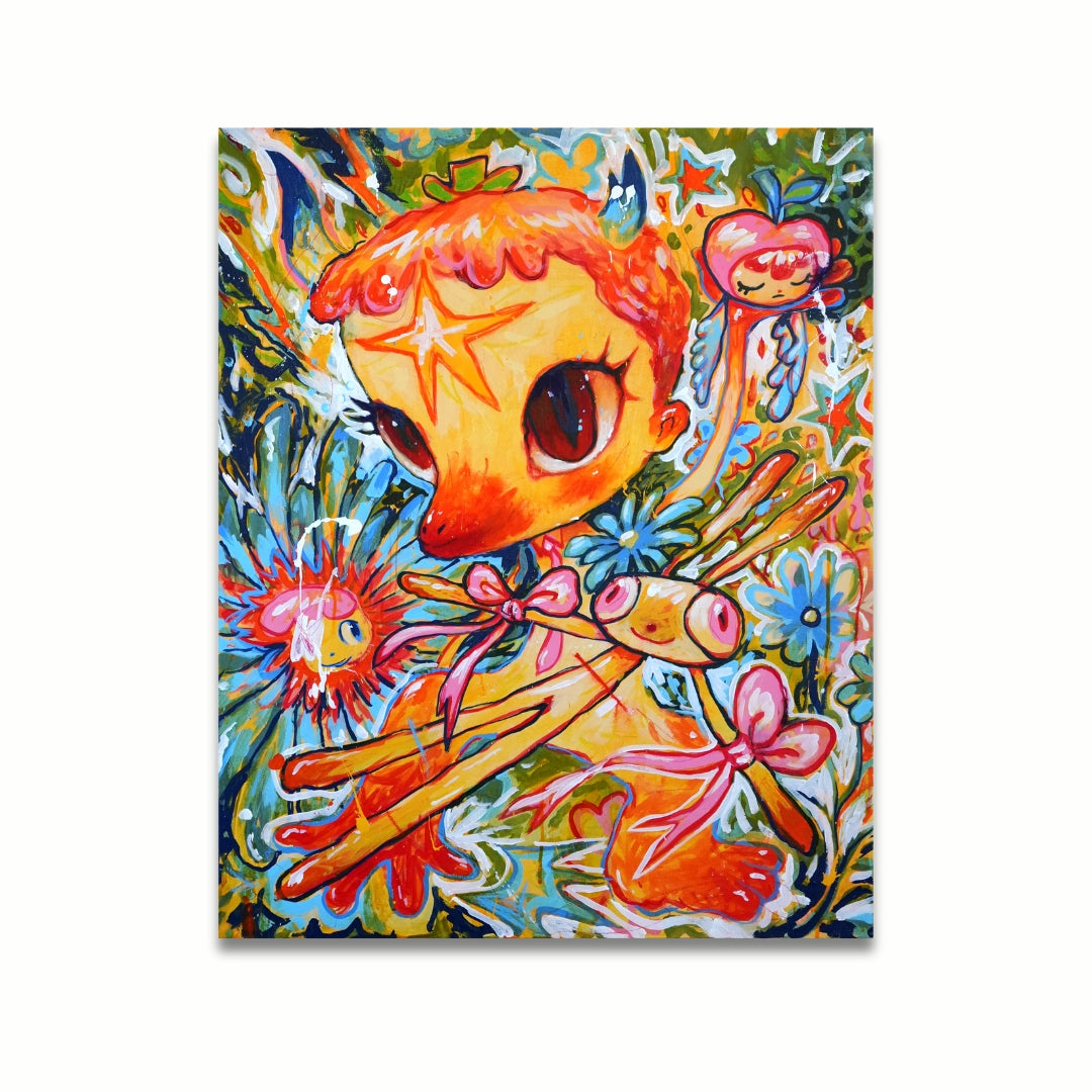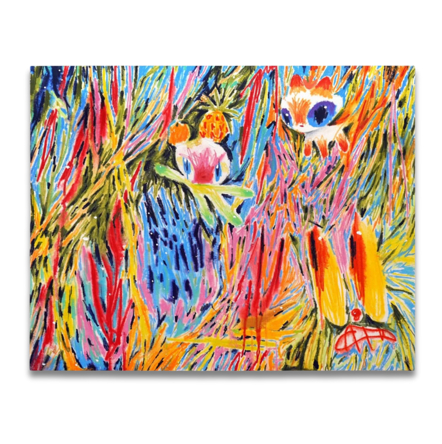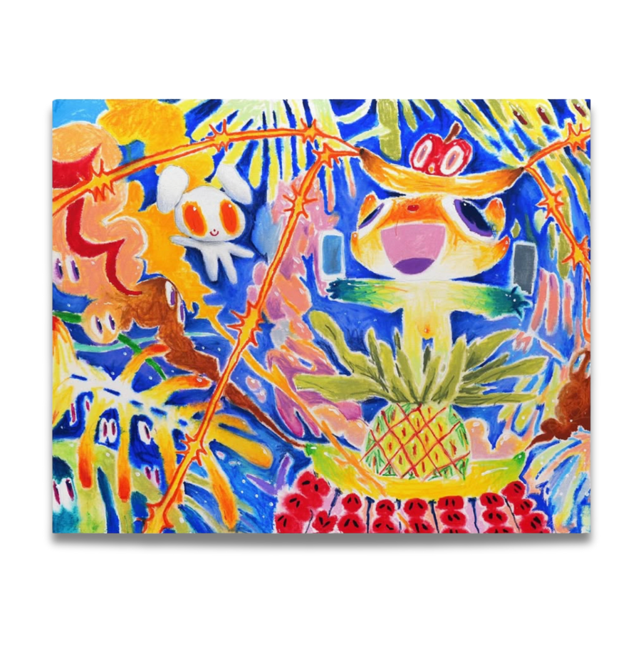 identity and self- expression in our time.Influenced by the Japanese Superflat movement, Colombian precolonial arts, current world events, and my experience working in animation, I blend pop-inspired visuals with personal narratives, often drawing on symbolism from Catholicism, Japanese animation and precolombian mythologies. All aspects present in my formative years in Colombia.