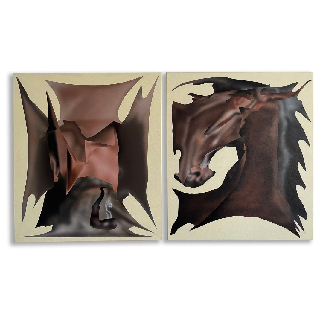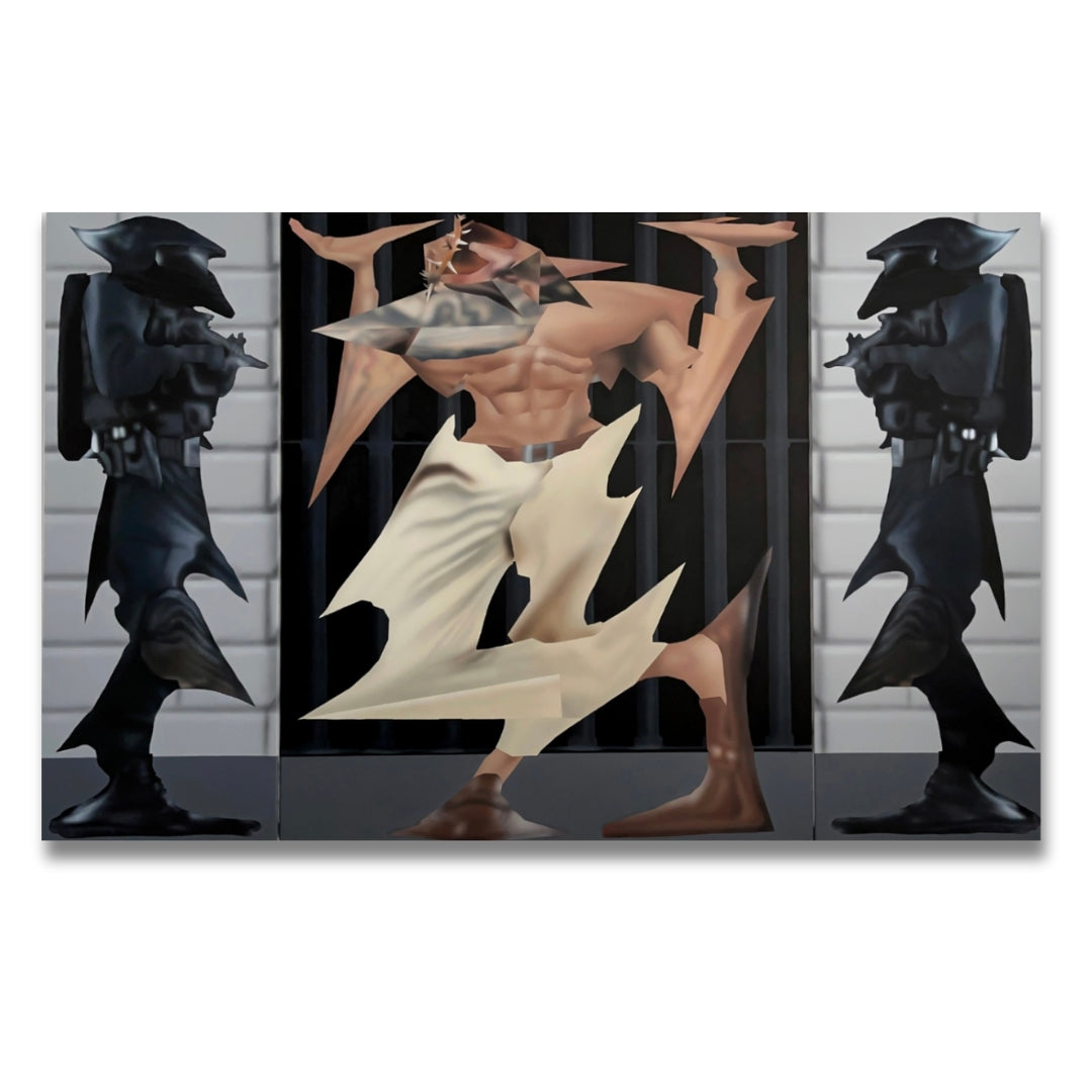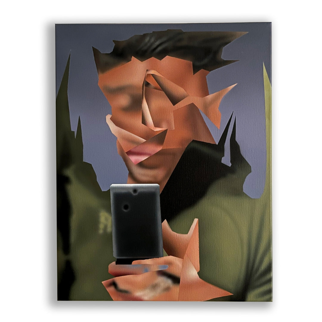 “Over the past three years, my experience as a new father has led me through significant self-reflection and personal growth, striving to be a good father and positive role model for my son. This journey inspires my current series, "Digital Fathers," which delves into the complexities of online masculinity and self-improvement culture. By combining digital and traditional painting techniques, I distort the images of prominent male figures, reflecting the confusion that many young men face in their search for guidance amidst a flood of conflicting messages.