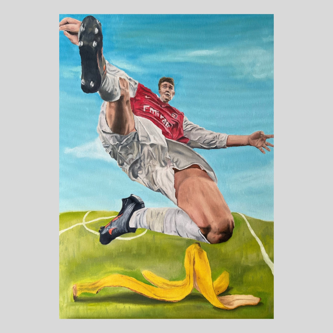 From placing Winnie the Pooh in the crosshairs of a hunter’s rifle to staging intense pub debates over New Balance versus Nike, Painterboi’s art captures universal themes that resonate with everyone.